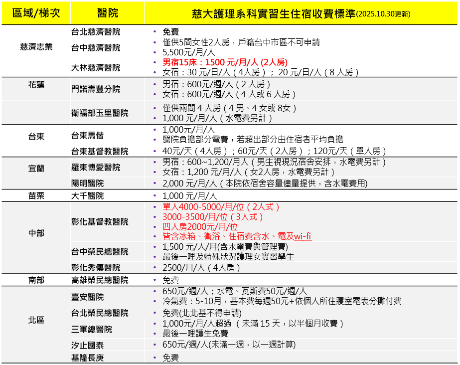 臺中榮民總醫院護理部 護理實習學生住宿管理辦法